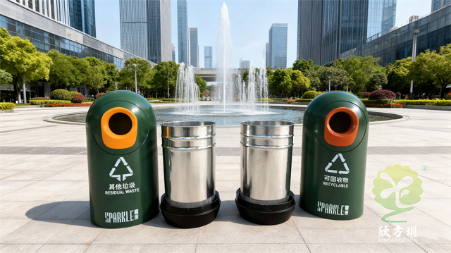 經過多方考察與論證,我司欣方圳承接了此次定制任務,旨在為該廣場量身打造一款兼具實用性、美觀性與耐用性的戶外分類垃圾桶解決方案。